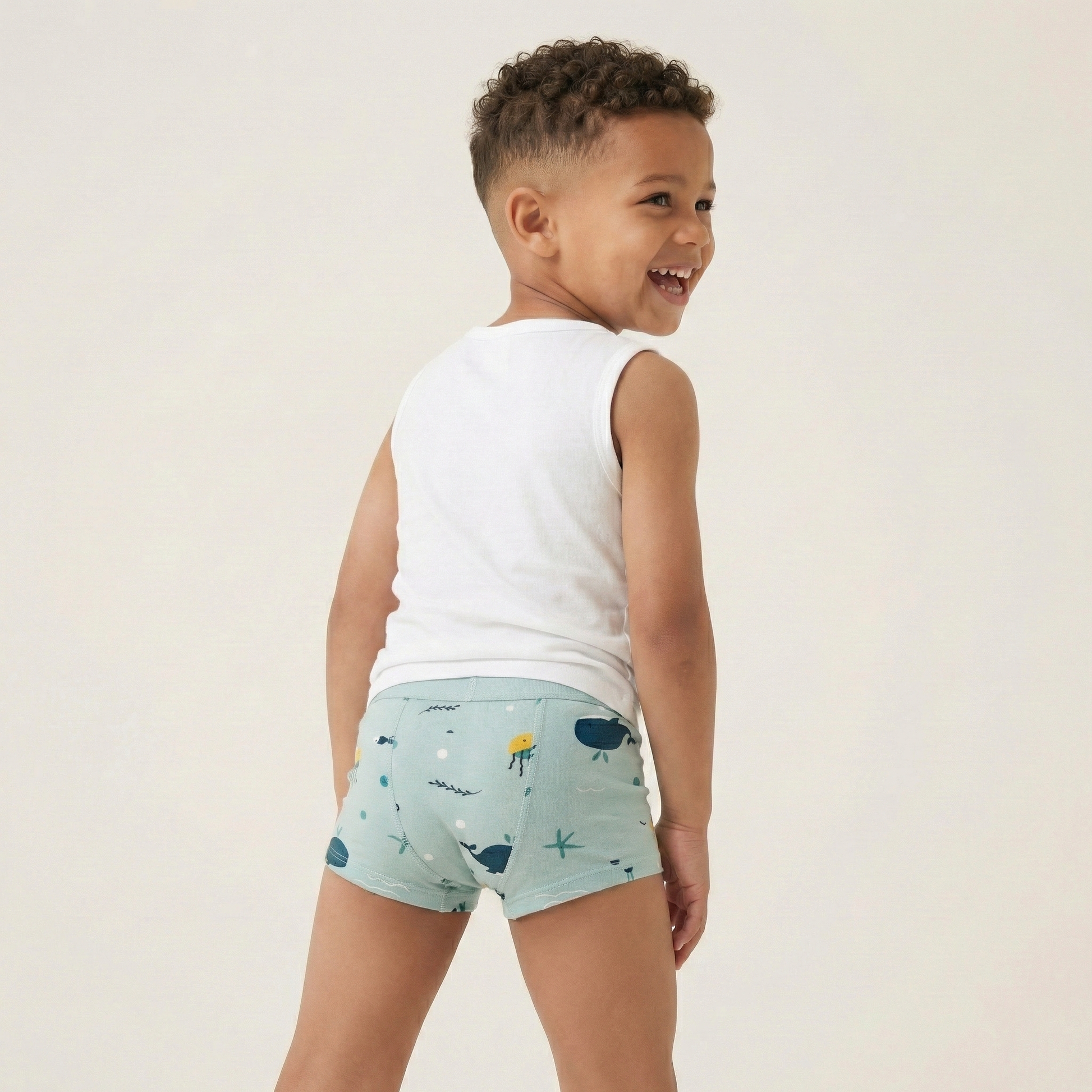 95% bamboo sits soft against skin, while a light absorbent layer catches small accidents without the bulk. PFAS-free, OEKO-TEX certified, and machine washable. Good for your kiddo, good for the planet.